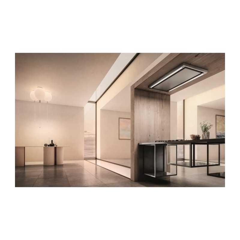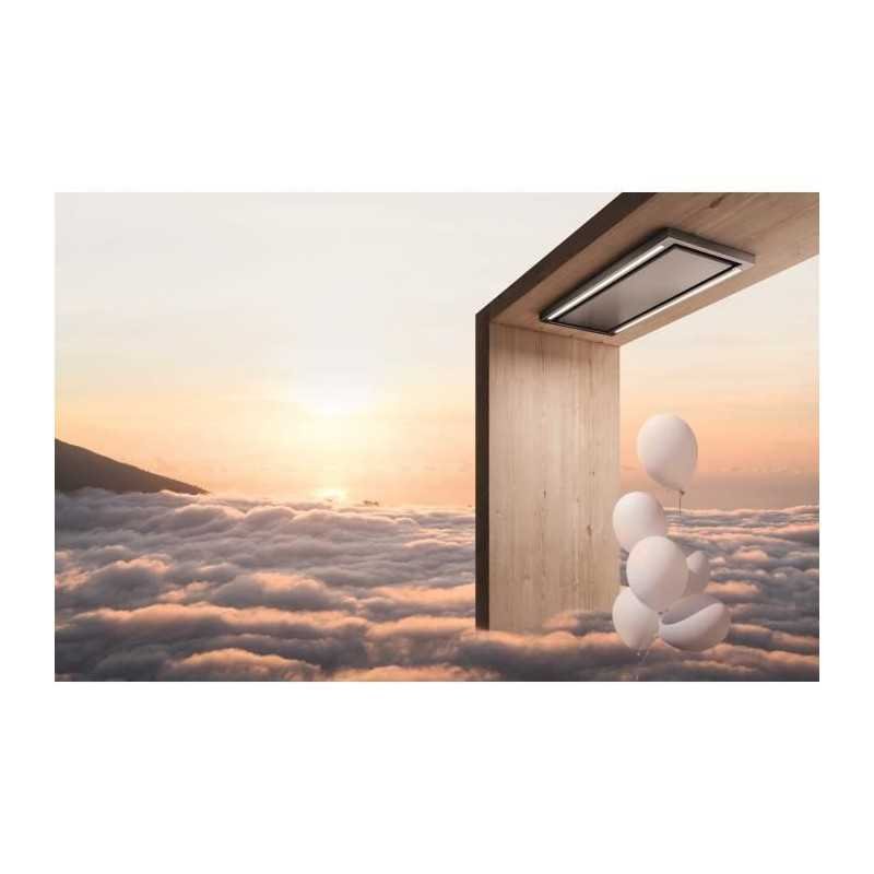 Hotte de plafond – Extraction ou filtration – 3 vitesses + booster – Eclairage LED 2 x 7 watts – Débit d’air aspiration 225 a 460, Filtration 215 a 475 – Niveau sonore aspiration 46 a 61, filtration 52 a 71 – L 90 x P 50 cm – Inox Filtre charbon en option – Classe : A++ – Télécommande fournie.