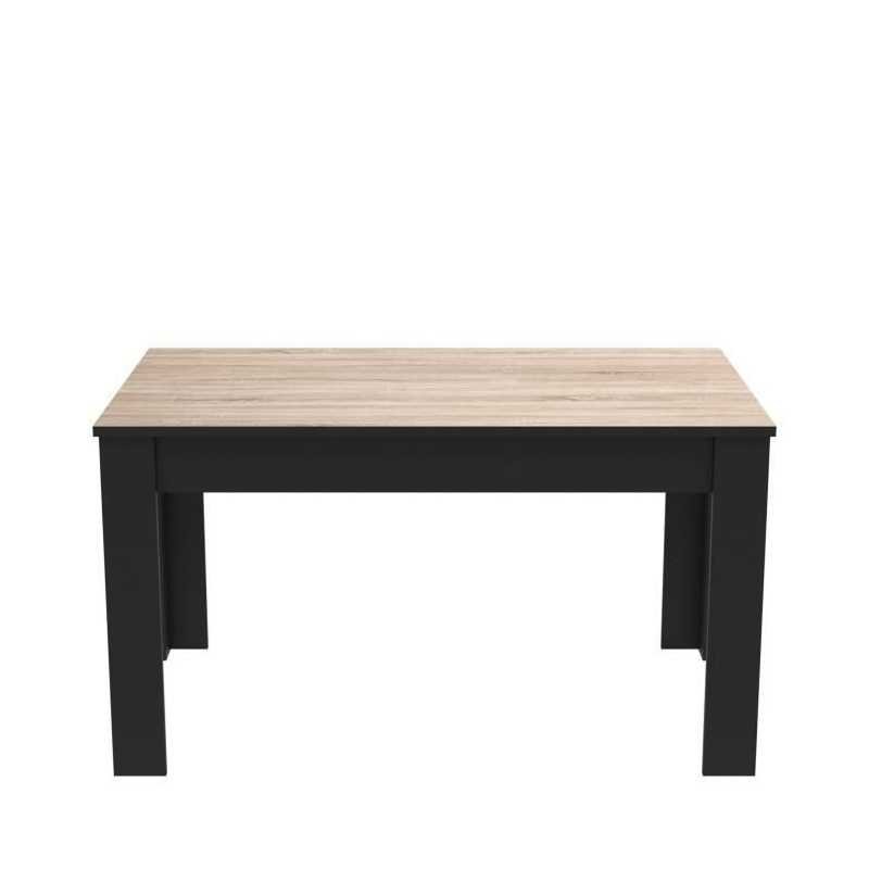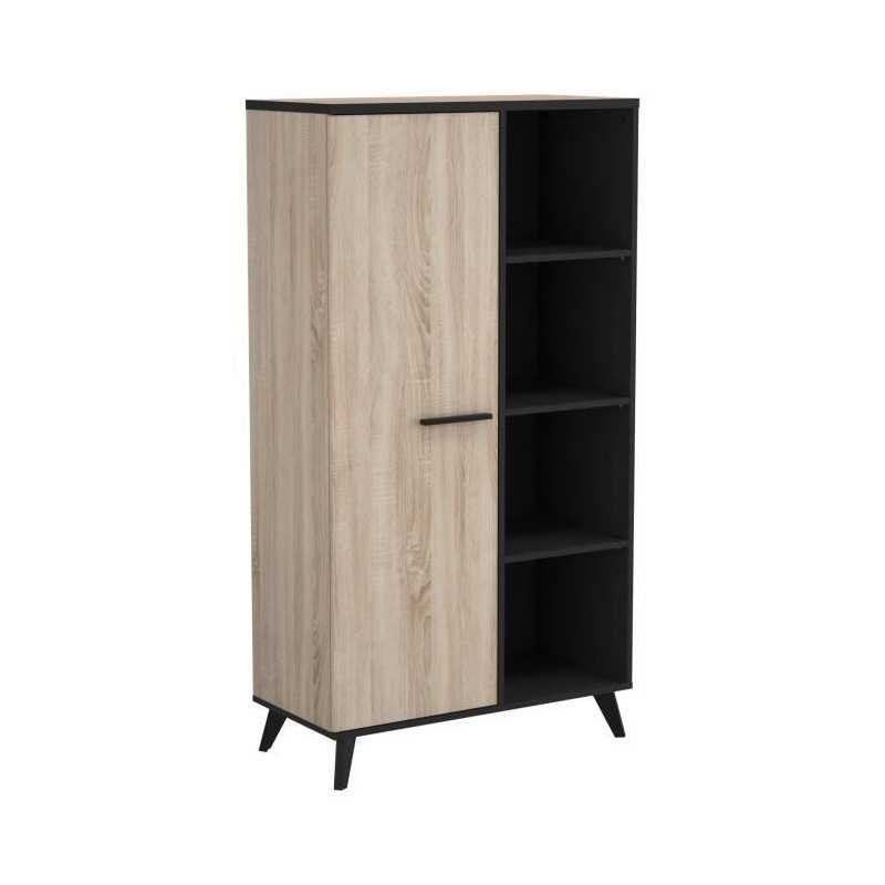 ENS WAYNE en panneaux de particules de 15 mm, dessus en 22 mm de coloris chene brossé et mélamine noire composé de : -1 enfilade 3 portes ouvrantes de dimensions L 160,7 x P 43,9 x H 73,3 cm -A gauche 2 niches séparées par un rayon (dimensions L 83 x P 42 cm) réglable sur 3 niveaux et fermées par 2 portes -A droite 2 niches séparées par un rayon (dimensions L 41 x P 42 cm) réglable sur 3 niveaux et fermées par 1 port
