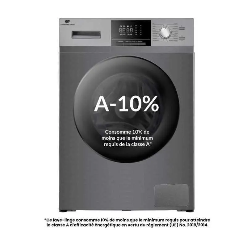 Lave-linge hublot – CONTINENTAL EDISON – 10kg – Moteur induction – 60 cm – 1400 trs/min – Silver