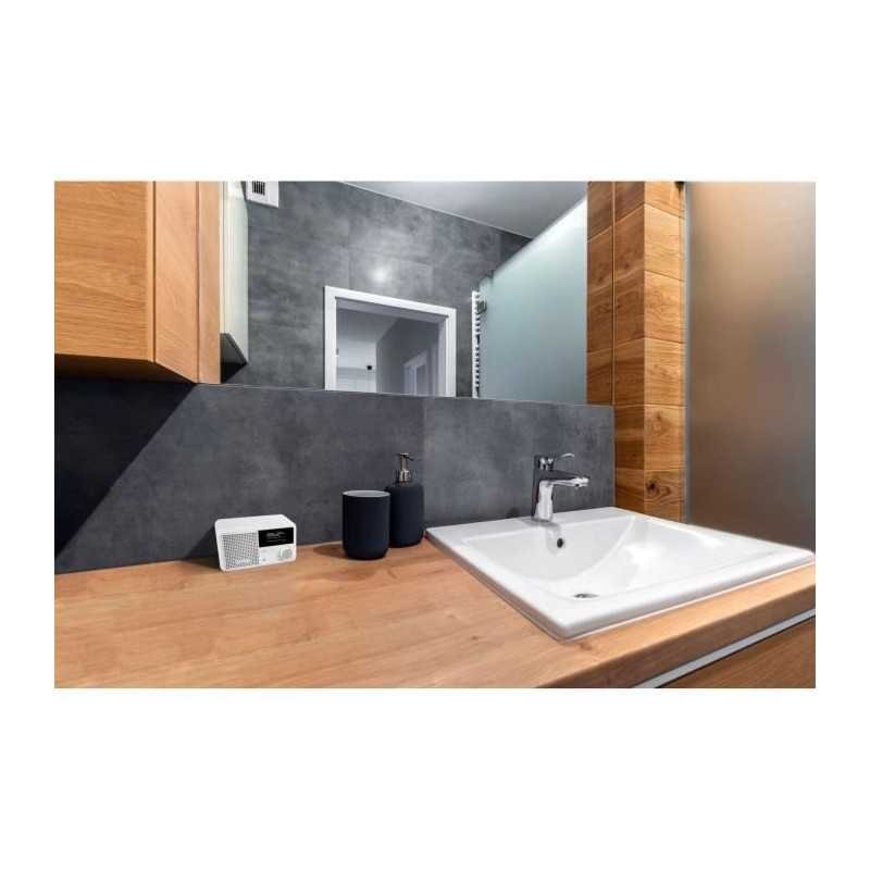 Cette radio Bluetooth/DAB+ ultra-compacte est idéale pour la cuisine ou la salle de bain grâce a sa protection IPX1. Elle dispose d’un écran couleur TFT de 1,47″, de 40 stations préréglées DAB+ et FM, d’une batterie intégrée offrant jusqu’a 6,5 heures d’autonomie, d’un égaliseur, d’une minuterie de mise en veille, d’un réveil avec snooze, et d’une puissance de sortie de 2 W RMS.