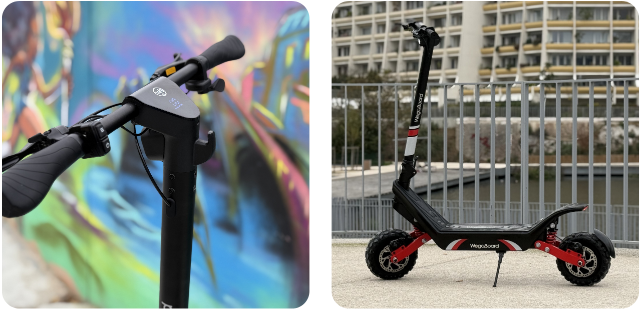 • Double moteur : Les 2 moteurs de 1200W offrent une puissance totale de 2400W. Une accélération fulgurante et une montée aisée des pentes les plus difficiles, vous garantissant un confort de conduite inégalé